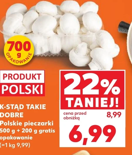 K-STĄD TAKIE DOBRE Polskie pieczarki 500 g + 200 g gratis opakowanie (=1 kg 9,99)