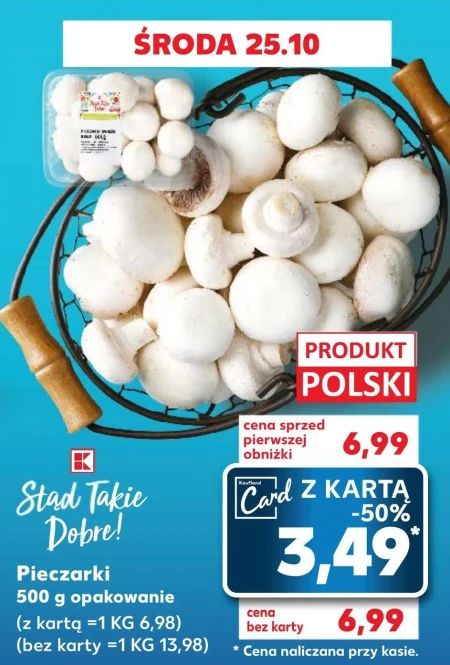 Pieczarki 500 g opakowanie (z kartą =1 KG 6,98) (bez karty =1 KG 13,98)