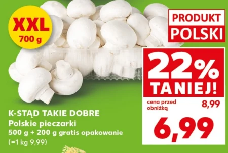 K-STĄD TAKIE DOBRE Polskie pieczarki 500 g + 200 g gratis opakowanie (=1 kg 9,99)