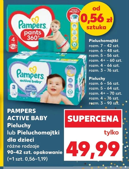 PAMPERS ACTIVE BABY Pieluchy lub Pieluchomajtki dla dzieci różne rodzaje 90-42 szt. opakowanie (=1 szt. 0,56-1,19)