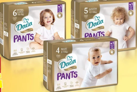 Pieluchomajtki Dada Pants Extra Care. Maxi-39 szt., Junior -35 szt., Extra Large - 32 szt. Kup 2 opakowania z kartą Moja Biedronka i zapłać mniej - 22,99 zł/szt.