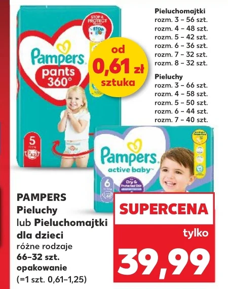 PAMPERS Pieluchy lub Pieluchomajtki dla dzieci różne rodzaje 66-32 szt. opakowanie (=1 szt. 0,61-1,25)