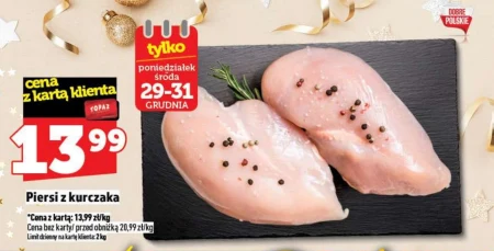 Piersi z kurczaka *Cena z kartą: 13,99 zł/kg Cena bez karty/ przed obniżką 20,99 zł/kg Limit dzienny na kartę klienta 2 kg