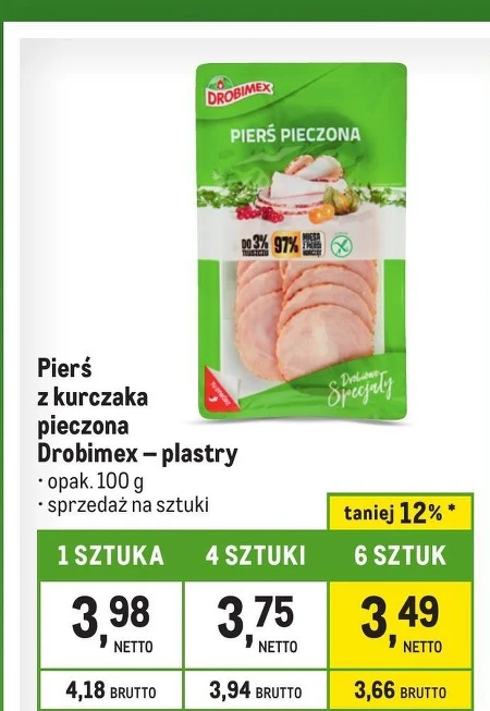 Pierś z kurczaka pieczona Drobimex - plastry · opak. 100 g · sprzedaż na sztuki