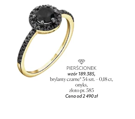PIERŚCIONEK wzór 189.385, brylanty czarne* 34 szt. - 0,18 ct, onyks, złoto pr. 585 Cena od 2 490 zł