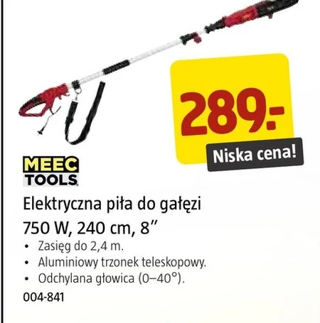 Elektryczna piła do gałęzi 750 W, 240 cm, 8". Zasięg do 2,4 m. Aluminiowy trzonek teleskopowy. Odchylana głowica (0-40°).