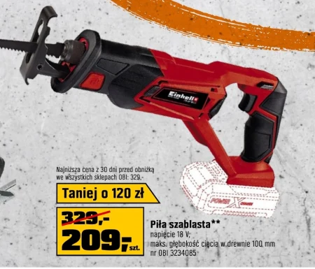 Piła szablasta** napięcie 18 V, maks. głębokość cięcia w drewnie 100 mm nr OBI 3234085 Piła szablasta 18V to narzędzie idealne do prac ogrodowych i remontowych, umożliwiające szybkie i precyzyjne cięcie różnych materiałów. Dzięki głębokości cięcia do 100 mm w drewnie sprawdzi się przy przycinaniu gałęzi, rozbiórce czy pracach budowlanych. Produkt o numerze 3234085 dostępny w ofercie OBI pozwoli efektywnie wykonać zadania wymagające mobilności i wszechstronności. Warto zwrócić uwagę na tę pozycję, planując prace wokół domu i w warsztacie.
