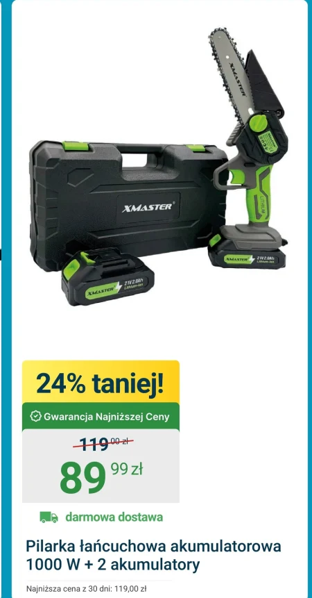 Pilarka łańcuchowa akumulatorowa 1000 W + 2 akumulatory Najniższa cena z 30 dni: 119,00 zł