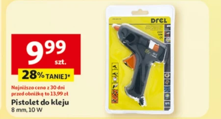 Pistolet do kleju 8 mm, 10 W Pistolet do kleju o średnicy dyszy 8 mm i mocy 10 W to narzędzie przydatne w pracach naprawczych, modelarskich oraz podczas tworzenia ozdób. Sprawdzi się przy łączeniu drewna, plastiku, papieru, tkanin i wielu innych materiałów. W ofercie sklepu Auchan znajdziesz ten pistolet, który dzięki swojej mocy zapewni szybkie i trwałe połączenia. Jest to kompaktowe i poręczne urządzenie, idealne zarówno dla majsterkowiczów, jak i osób wykonujących prace manualne.