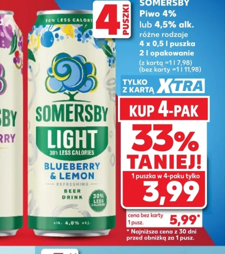 SOMERSBY Piwo 4% lub 4,5% alk. różne rodzaje 4 x 0,5 l puszka 2 l opakowanie (z kartą = 11,98) (bez karty = 11,98)