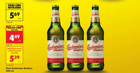 Pivo Budweiser Budvar, 500 ml dostępne jest w ofercie Biedronka w cenie 4,49 zł, co stanowi obniżkę z 5,69 zł, dając 8,99 zł za litr. To klasyczne, czeskie piwo typu lager, cenione za swój pełny, wyraźny smak i aromatyczny chmielowy charakter. Idealnie sprawdzi się podczas spotkań z przyjaciółmi, do posiłków lub jako orzeźwiający napój w cieplejsze dni. Teraz możesz cieszyć się ulubionym smakiem w korzystnej cenie. Oferta ważna od 2026-04-10 do 2026-04-30 Źródło: gazetka Biedronka