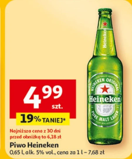 Piwo Heineken 0,65 l, alk. 5% vol., cena za 1 l - 7,68 zł