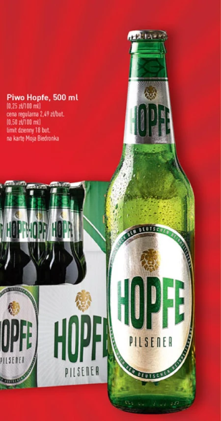 Piwo Hopfe butelka, podana cena za z karą Moja Biedronka.