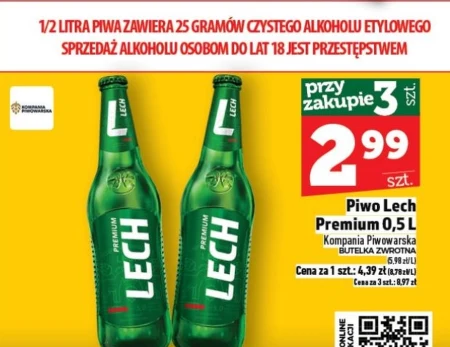 Piwo Lech Premium 0,5 L Kompania Piwowarska BUTELKA ZWROTNA (5,98 zł/L) Cena za 1 szt .: 4,39 zł (8,78zł/L) Cena za 3 szt .: 8,97 zł