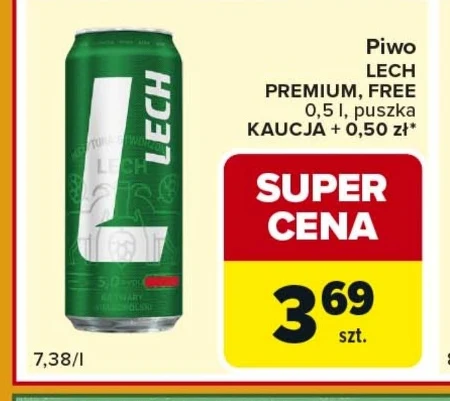 Lech Premium Free 0,5l w Carrefour można teraz kupić za 3,69 zł. Promocja obejmuje puszkę o pojemności pół litra, co czyni go idealnym wyborem na spotkanie ze znajomymi lub relaks w domu. Pamiętaj o doliczeniu kaucji w wysokości 50 groszy. Sprawdź aktualną ofertę Carrefour i zaopatrz się w ulubione piwo w korzystnej cenie.