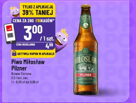 Piwo Miłosław Pilzner Browar Fortuna 0,5 l but. zwr. 1l -6,00 zł lub 9,98 zł