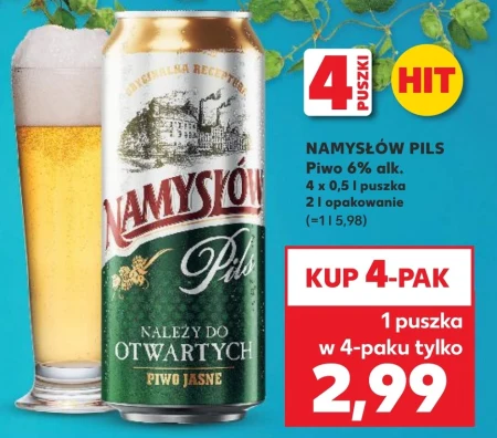 NAMYSŁÓW PILS Piwo 6% alk. 4 × 0,5 l puszka 2 l opakowanie (=1l 5,98)