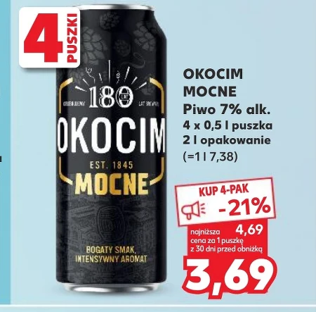OKOCIM MOCNE Piwo 7% alk. 4 × 0,5 l puszka 2 l opakowanie (=1l 7,38)
