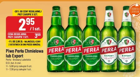 Piwo Perła Chmielowa lub Export Perła Browary Lubelskie 0,5 l, but. b-zwr. 1 l-5,90 przy zakupie 5 szt. 1 l-7,38 przy zakupie 1 szt.