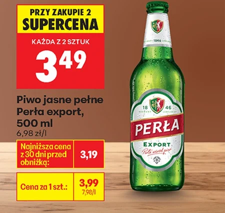 Piwo jasne pełne Perła export, 500 ml 6,98 zł/l
