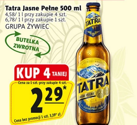Tatra Jasne Pełne 500 ml 4,58/ 1 | przy zakupie 4 szt. 6,78/ 1 l przy zakupie 1 szt. GRUPA ŻYWIEC