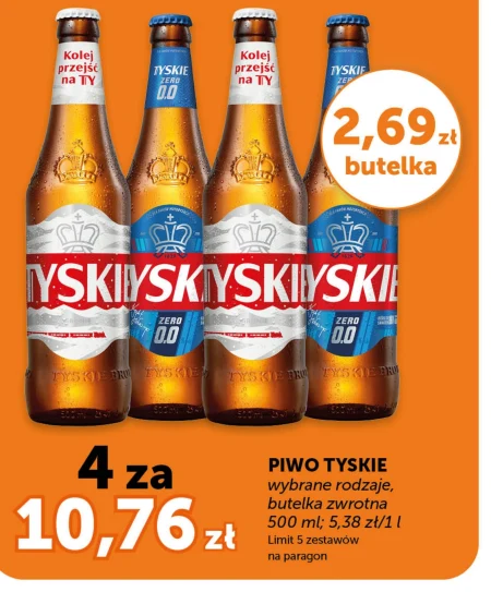 Piwo Tyskie, wybrane rodzaje, dostępne jest w ofercie moje sklepy w butelce zwrotnej za 5,38 zł za litr, a cztery butelki w zestawie kosztują 10,76 zł. To klasyczne piwo w sprawdzonym opakowaniu, idealne na spotkania ze znajomymi lub chwile relaksu. Limit promocyjny wynosi pięć zestawów na jeden paragon, więc warto zaopatrzyć się w ulubione smaki. To świetna okazja, by zgromadzić zapas do nadchodzących ciepłych dni.