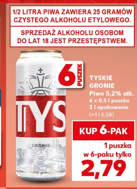TYSKIE GRONIE Piwo 5,2% alk. 6 × 0,5 l puszka 3 | opakowanie (=1l 5,58)