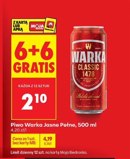 Piwo Warka Jasne Pełne, 500 ml 4,20 zł/l