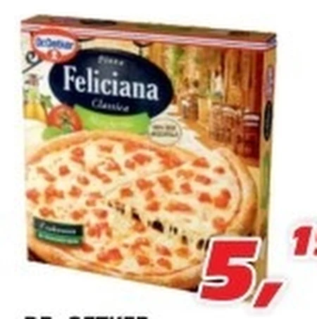 Tajemnica nowej pizzy Feliciana Dr. Oetkera tkwi w cienkim i chrupiącym cieście z lekko grubszymi brzegami oraz pysznych składnikach i przyprawach. To idealna pizza, by poczuć smaki Italii. Ser - 100% ser mozzarella; używamy sera bez barwników Oliwa - z pierwszego tłoczenia; jest nośnikiem smaku, wydobywa i podkreśla aromat pomidorów i ziół Zakwas pszenny - to naturalny składnik nadający ciastu charakterystyczny smak i konsystencję Przyprawy - zostały poddane suszeniu by zachowały swój wyjątkowy smak i zapach Pomidory - do sosu użyliśmy koncentratu pomidorowego, którego 100 g powstało z 600 g pomidorów