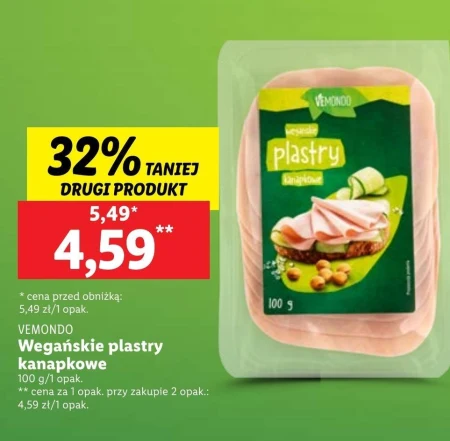 VEMONDO Wegańskie plastry kanapkowe 100 g/1 opak. ** cena za 1 opak. przy zakupie 2 opak.: 4,59 zł/1 opak.