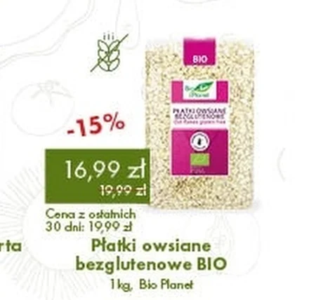 Płatki owsiane bezglutenowe BIO 1kg, Bis Planet