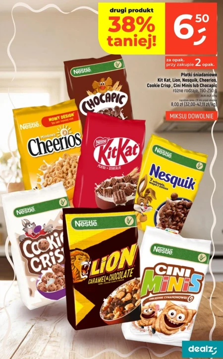 Płatki śniadaniowe Kit Kat, Lion, Nesquik, Cheerios, Cookie Crisp, Cini Minis lub Chocapic różne rodzaje, 190-250 g