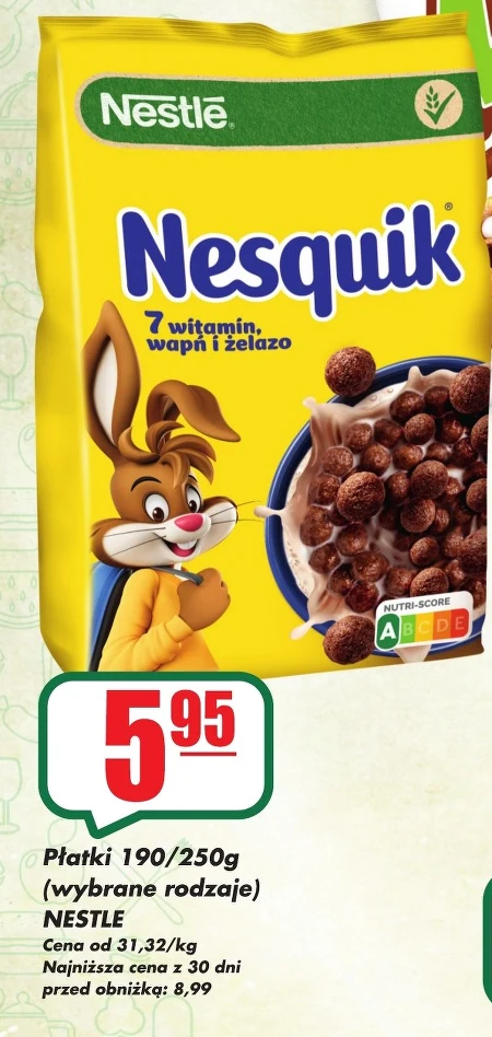 Płatki 190/250g (wybrane rodzaje) NESTLE Cena od 31,32/kg Najniższa cena z 30 dni przed obniżką: 8,99