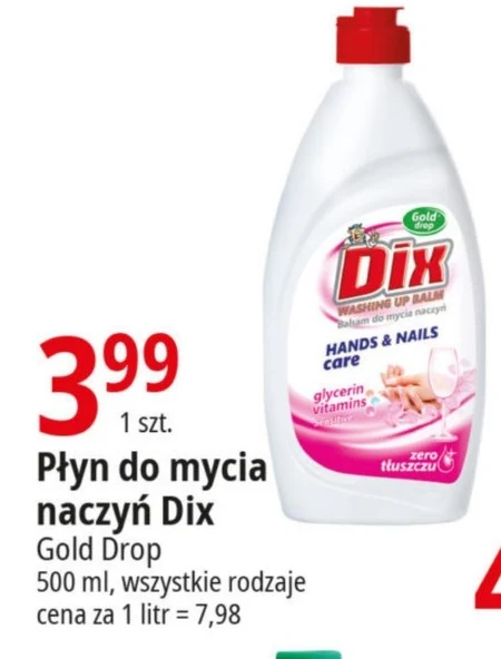 Płyn do mycia naczyń Dix Gold Drop 500 ml, wszystkie rodzaje cena za 1 litr = 7,98