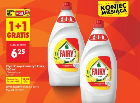 Płyn do mycia naczyń Fairy, 750 ml różne rodzaje 8,33 zł/l Cenaza1szt. 12,49 bez karty MB: 16.65/1 Limit dzienny 4 szt. na kartę Moja Biedronka.