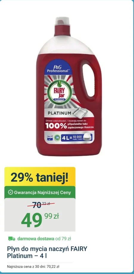Płyn do mycia naczyń FAIRY Platinum – 4 l Najniższa cena z 30 dni: 70,22 zł