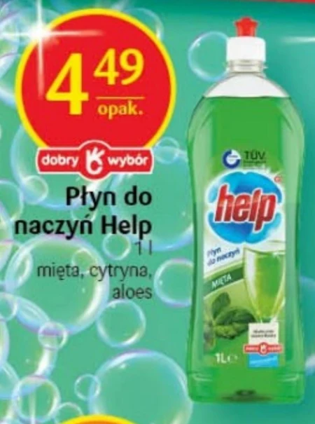 Płyn do naczyń Help, pojemność 1 l, mięta, cytryna, aloes.