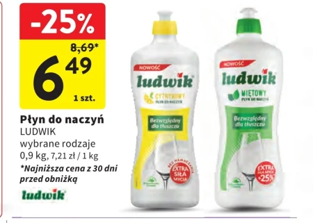 Płyn do naczyń Ludwik w promocji w Intermarché można kupić już za 6,49 zł za opakowanie o pojemności 0,9 kg, co daje 7,21 zł za kilogram. Aktualna cena jest obniżona o 25% z 8,69 zł, a oferta została oznaczona jako najniższa cena z ostatnich 30 dni. Płyn Ludwik jest dostępny w wybranych rodzajach, co pozwala dopasować go do indywidualnych preferencji. Ten płyn skutecznie usuwa tłuszcz i brud, pozostawiając naczynia lśniąco czyste, a dzięki promocyjnej cenie jest to idealny moment, by uzupełnić zapasy.