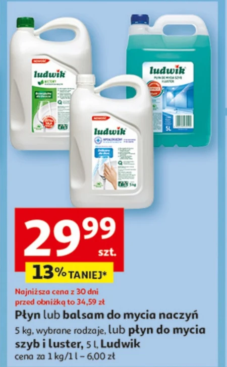 Płyn lub balsam do mycia naczyń 5 kg, wybrane rodzaje, lub płyn do mycia szyb i luster, 5 l, Ludwik cena za 1 kg/1 l - 6,00 zł