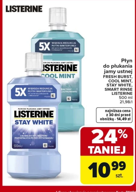 Płyn do płukania jamy ustnej FRESH BURST, COOL MINT, STAY WHITE, SMART RINSE LISTERINE 500 ml