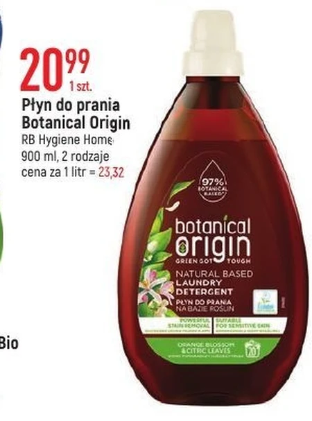 Płyn do prania Botanical Origin, pojemność 900 ml, 2 rodzaje.