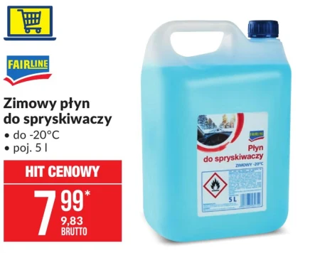 Zimowy płyn do spryskiwaczy. Temperatura zamarzania -20°C. Pojemność 5 l. Cena netto - 7,99 zł.