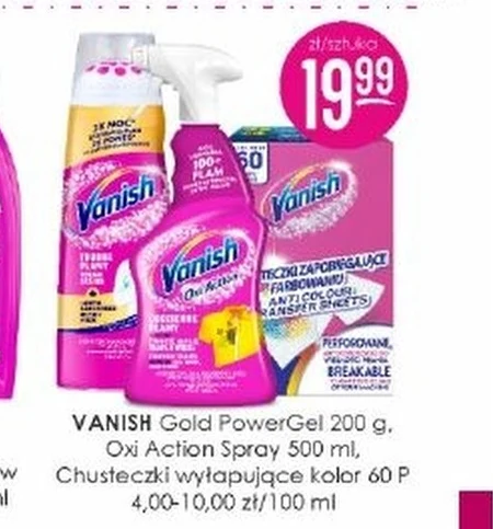VANISH Gold Power Gel 200 g. Oxi Action Spray 500 ml, Chusteczki wyłapujące kolor 60 P