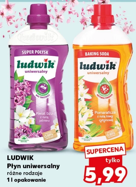 Płyn uniwersalny LUDWIK dostępny jest w ofercie Kaufland w cenie 5,99 za butelkę o pojemności 1 litr. Różne rodzaje płynu LUDWIK sprawdzą się do codziennego czyszczenia różnych powierzchni w domu, w kuchni czy w łazience. To praktyczny środek do utrzymania czystości i porządku. Warto wykorzystać tę okazję i zaopatrzyć się w sprawdzony płyn do sprzątania w atrakcyjnej cenie. Oferta ważna od 2026-04-13 do 2026-04-15 Źródło: gazetka Kaufland