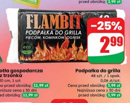 Podpałka do grilla 48 szt. / 1 opak. 0,06 zł/szt. Cena przed obniżką: 3,99 zł Najniższa cena z 30 dni przed obniżką: 3,99 zł