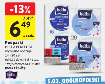 Podpaski BELLA PERFECTA wybrane rodzaje 14 - 20 szt. od 0,32 do 0,46 zł / 1 szt.