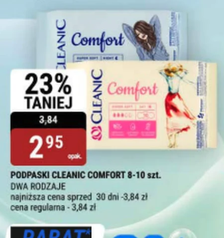 PODPASKI CLEANIC COMFORT 8-10 szt. DWA RODZAJE najniższa cena sprzed 30 dni -3,84 zł cena regularna - 3,84 zł