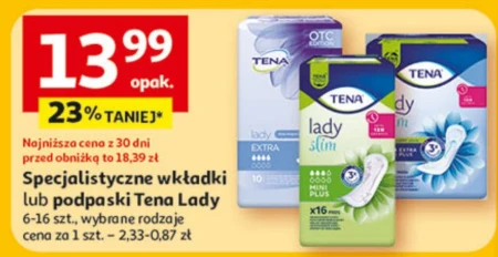 Specjalistyczne wkładki lub podpaski Tena Lady 6-16 szt., wybrane rodzaje cena za 1 szt. - 2,33-0,87 zł