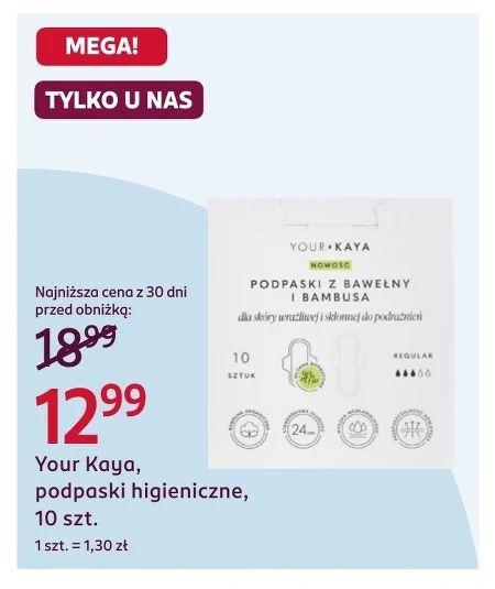 Your Kaya, podpaski higieniczne, 10 szt. 1 szt. = 1,30 zł