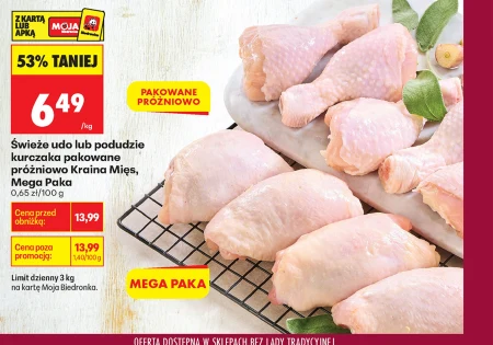 Świeże udo lub podudzie kurczaka pakowane próżniowo Kraina Mięs, Mega Paka 0,65 zł/100 g